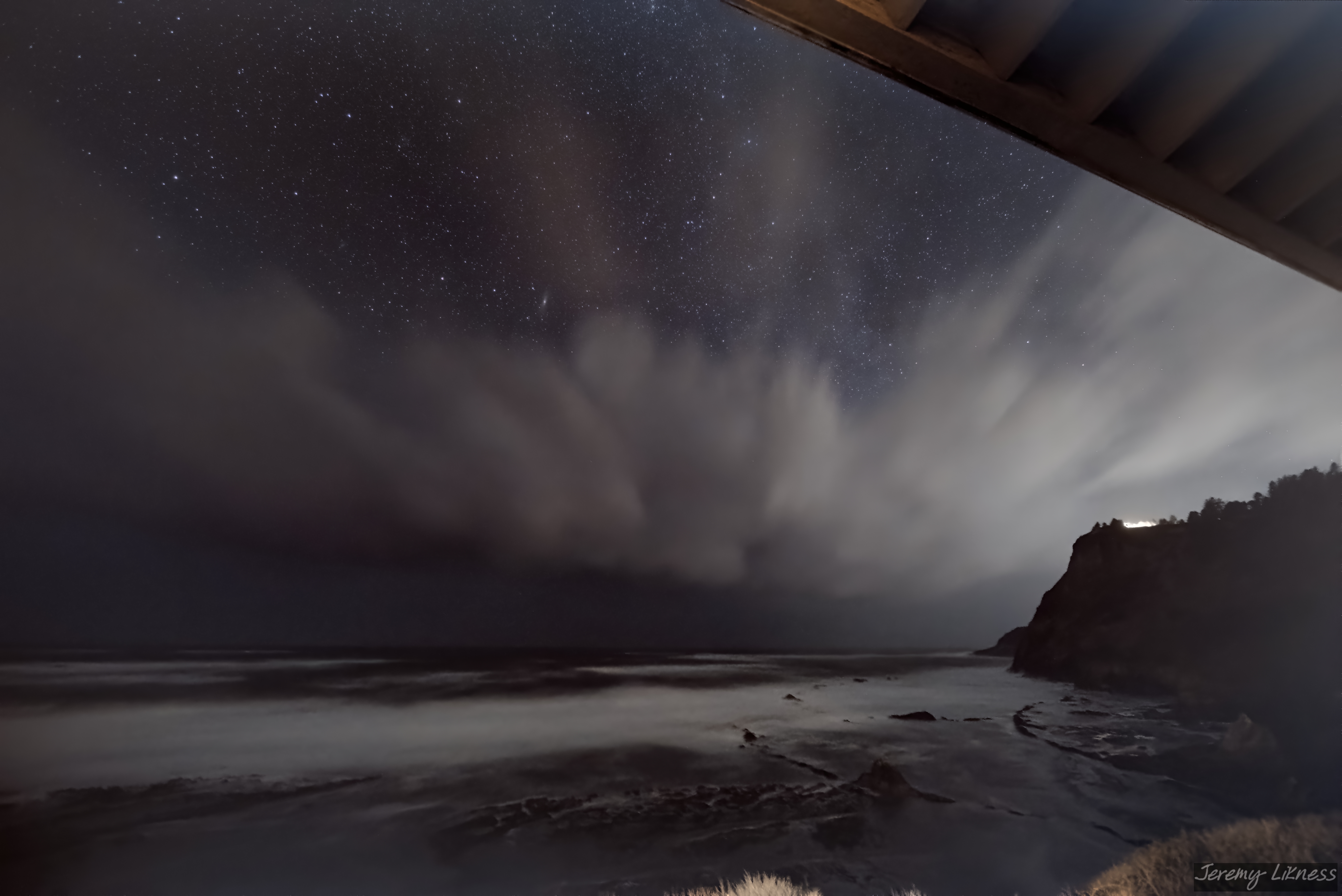 As much as I love looking through a powerful telescope, my astrophotography hobby began with a camera and I’ve always enjoyed taking wide angle shots as much as observing deep space objects. Taking pictures at night requires nothing more than a camera and a bit of knowledge to choose the right settings. A mount that tracks the stars may be ideal but is not necessary. For example, this shot of the Andromeda galaxy peeking above storm clouds on the Oregon coast was taken with a Sony Alpha 6300 mirrorless camera mounted on a stationary tripod.