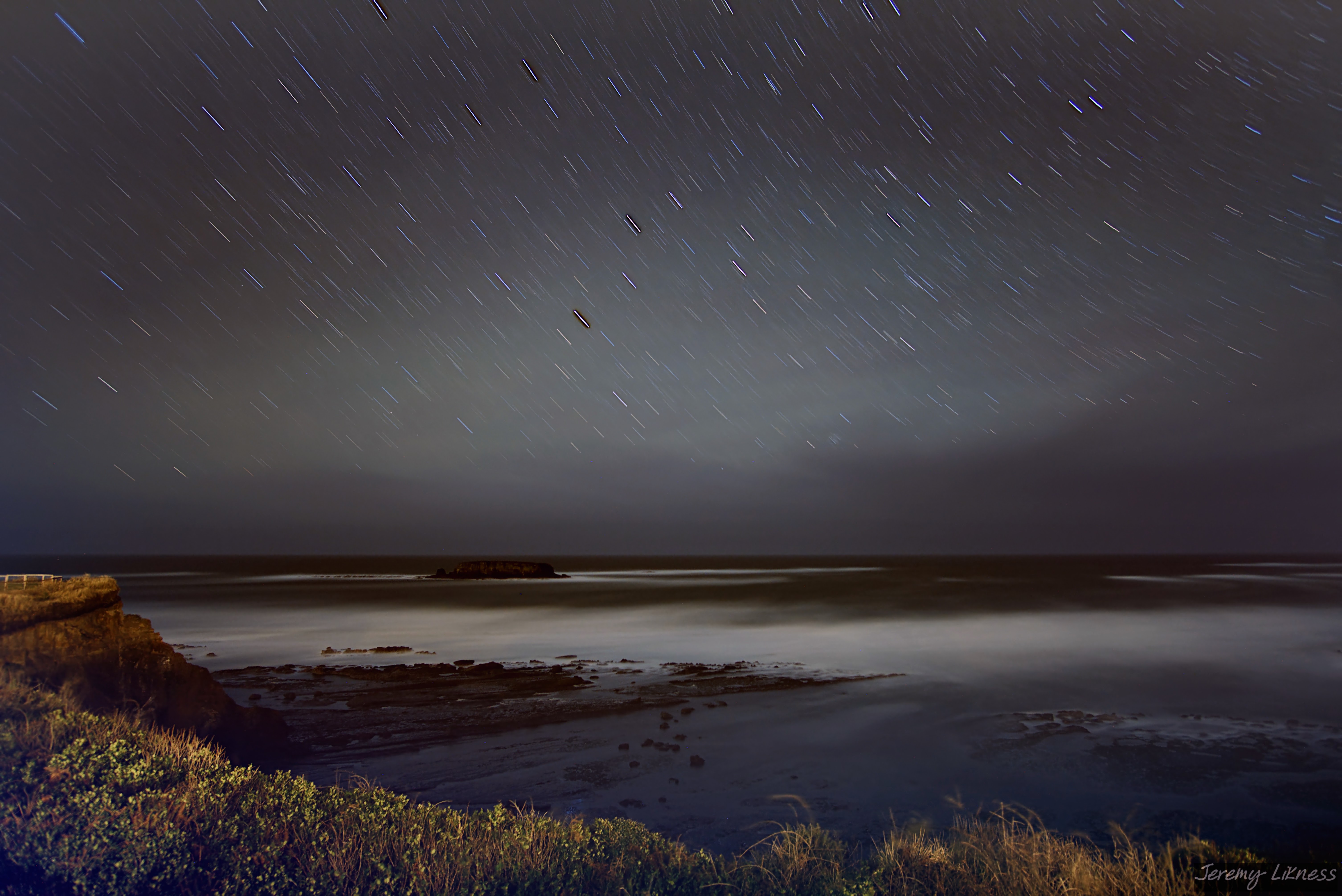 I couldn't resist taking a long exposure to capture colorful star trails over the Pacific Ocean.