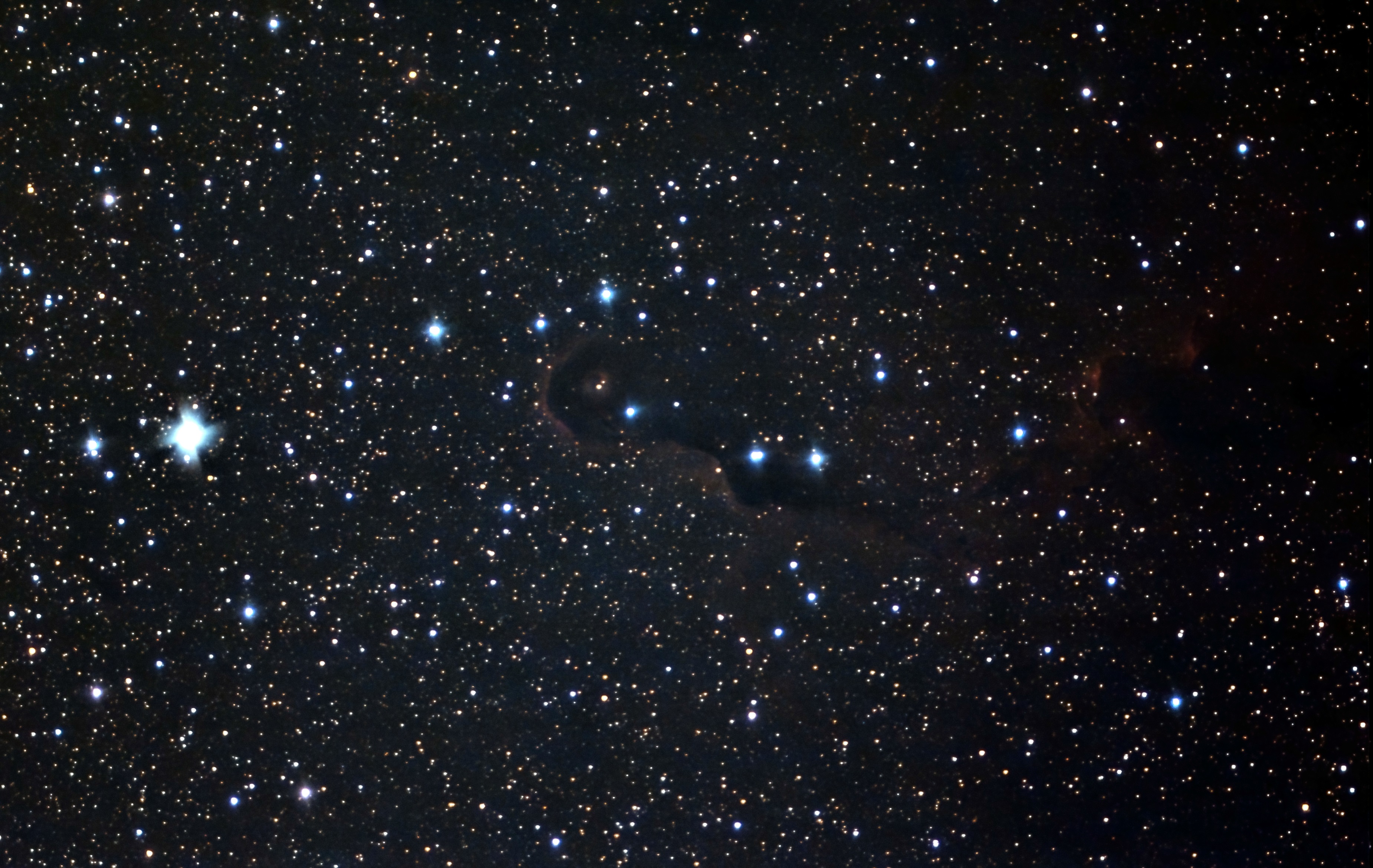 The long curling trunk is cosmos gas and dark dust believed to be forming stars across a massive region.