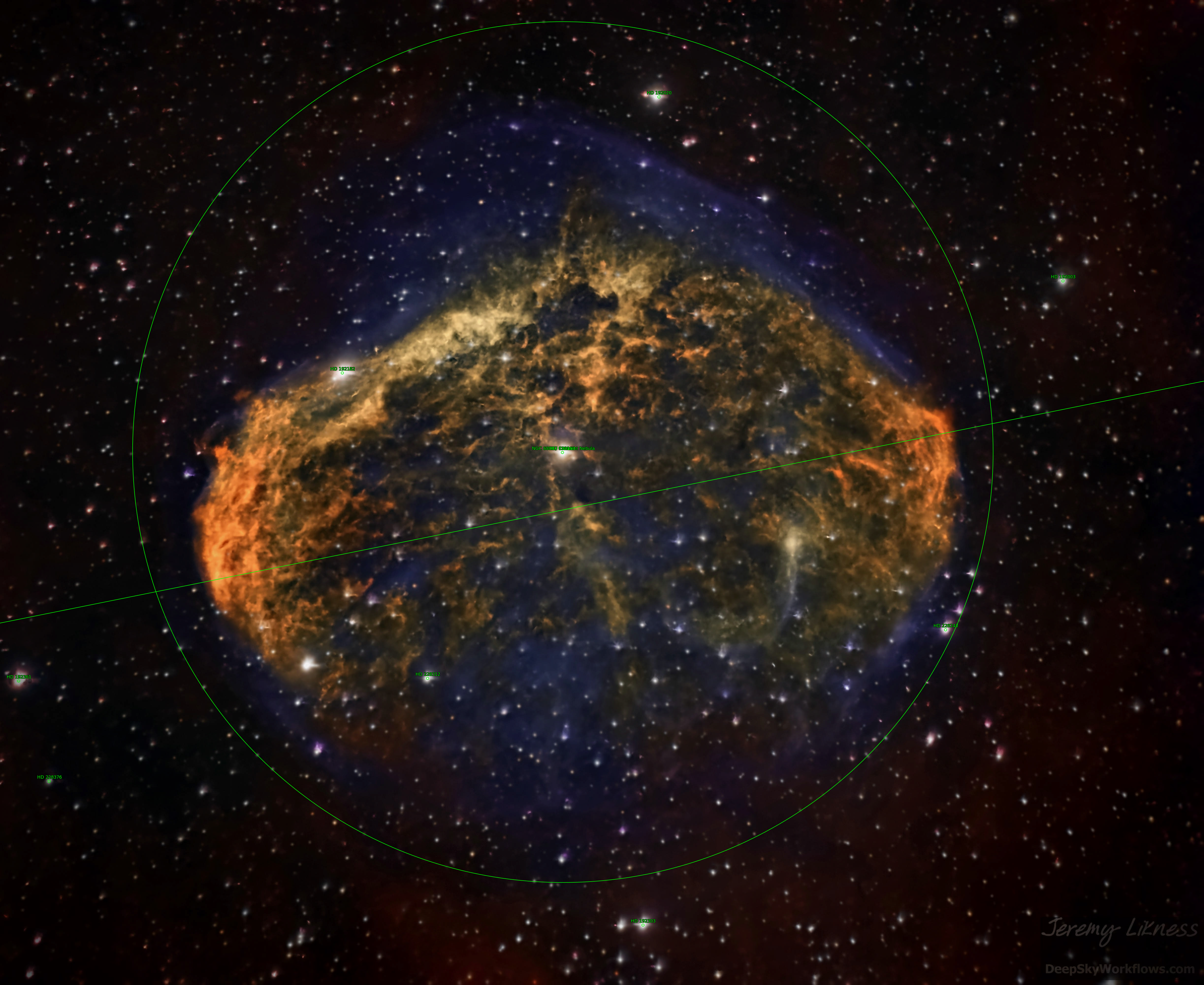 The vastness of space displaced in the space / Of a nebulous brain with an invisible face / Both explosion and implosion as the stellar winds blow / From a Wolf-Rayet star with a nuclear glow / Its membrane stretched thin: what will the fate / Be of this structure named NGC6 triple-8?