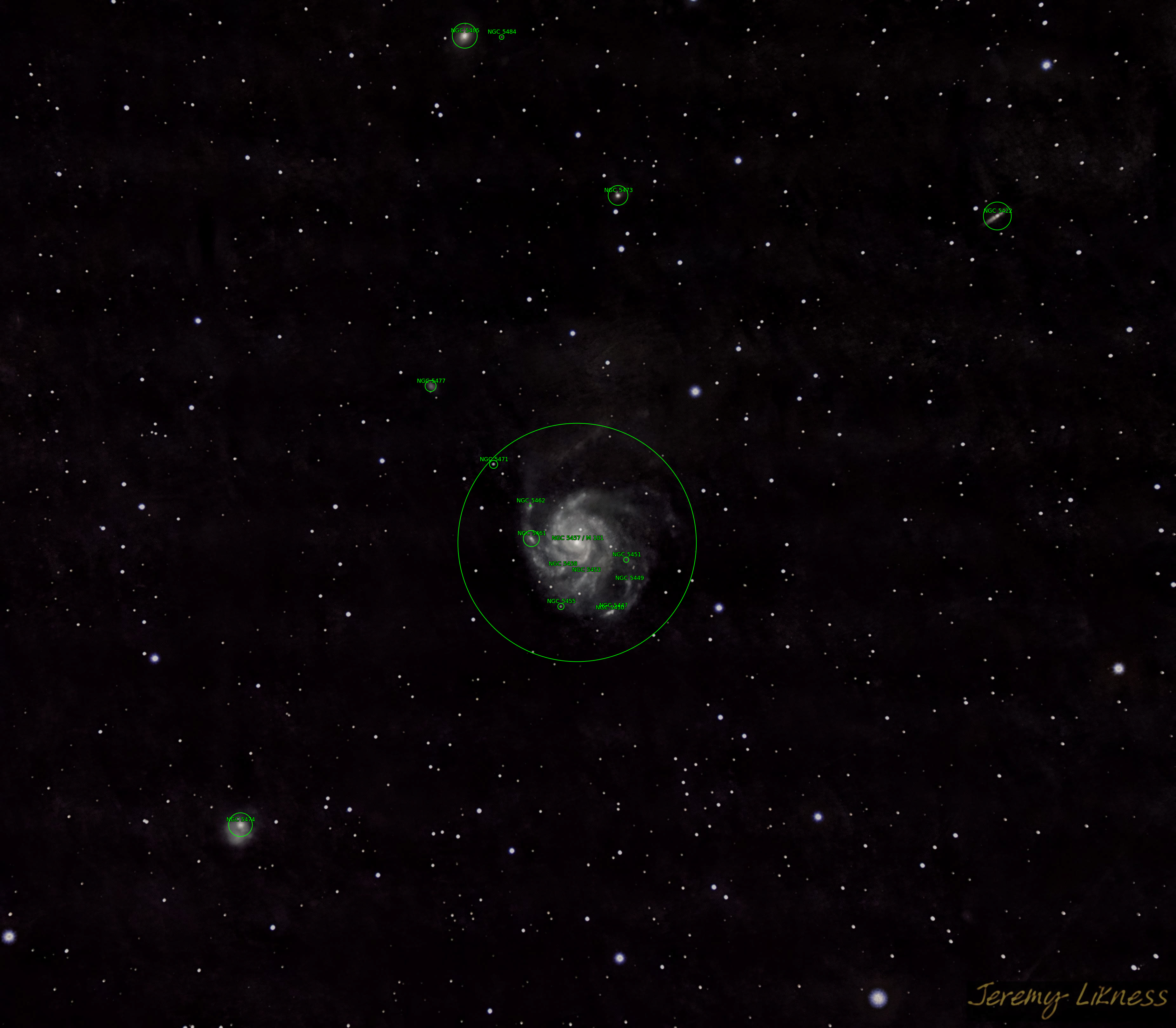 This shot of the popular M101 Pinwheel Galaxy was taken at 336mm to produce a wide field that reveals myriad neighboring galaxies.