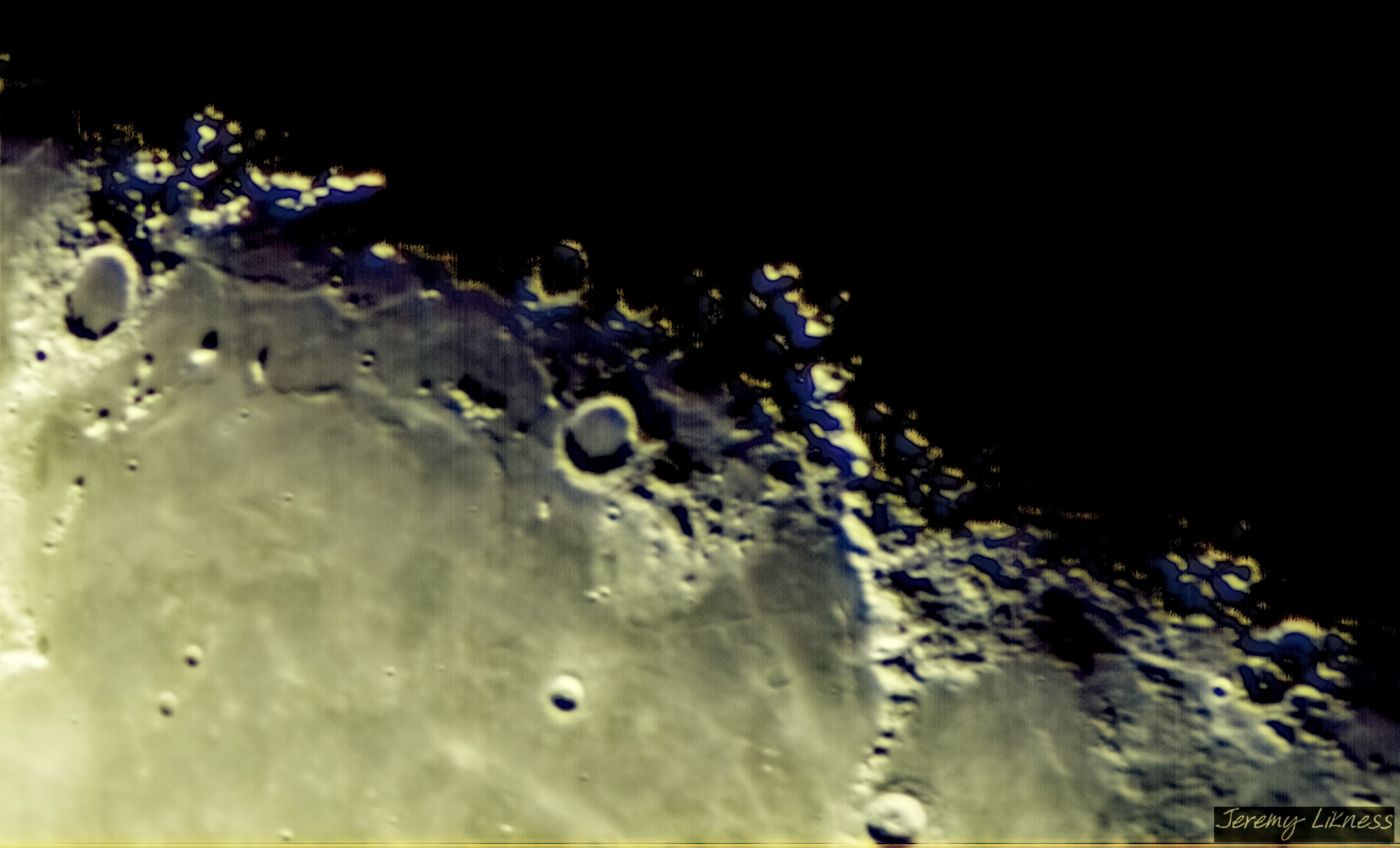 A close up of the Mare Imbrium region at the edge of the shadow.