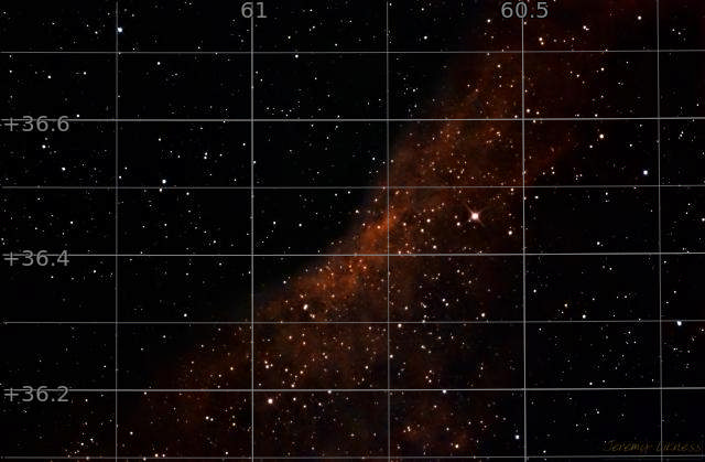 This picture is just a small part of the California-shaped NGC1499, a faint nebula that requires lots of exposure and/or narrowband filters to truly appreciate.