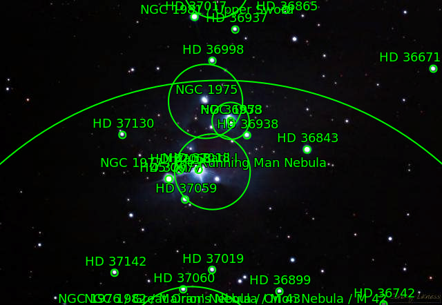 The star 42Ori NGC1973 NGC1975 NGC1977 The star 45Ori the Running Man Nebula