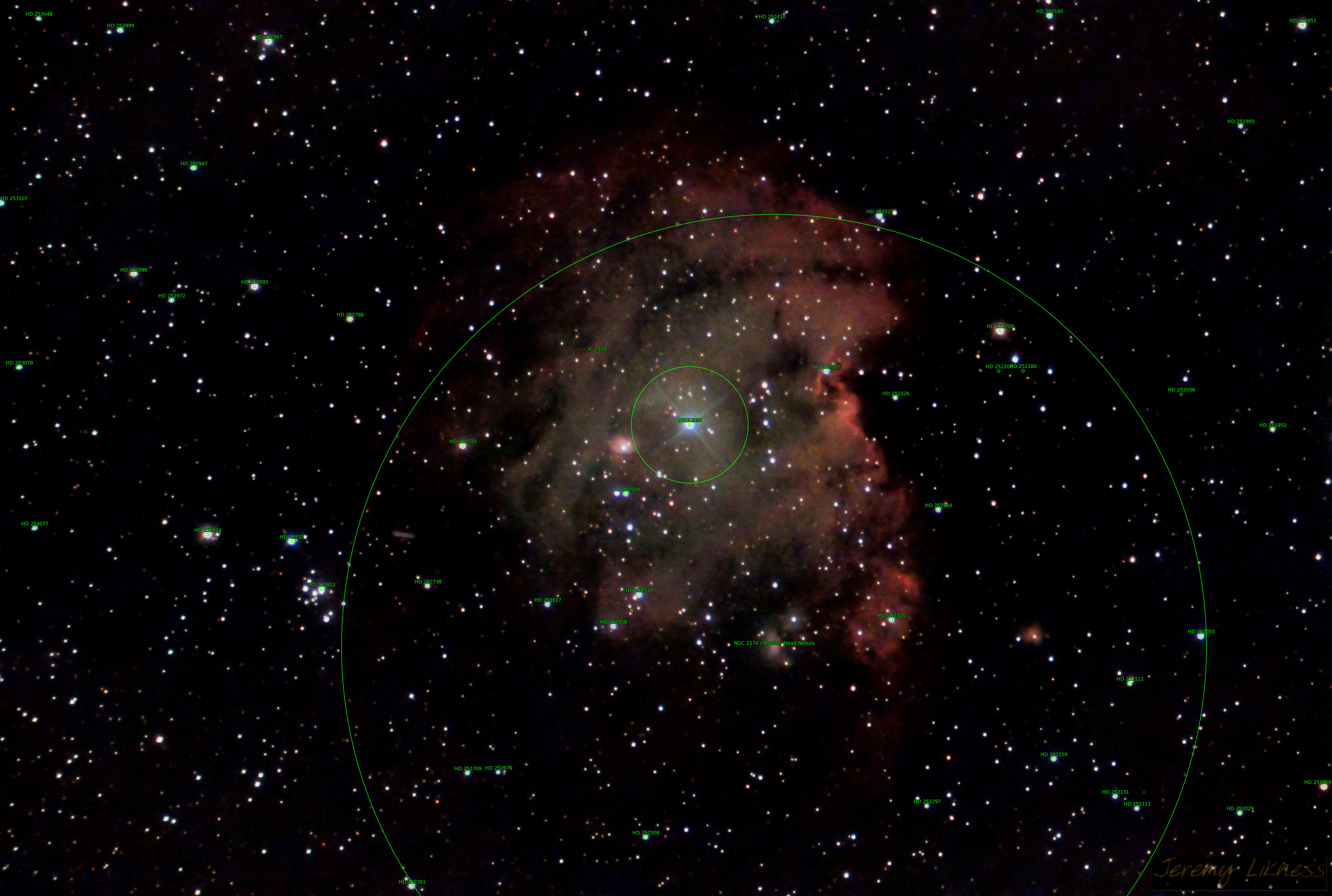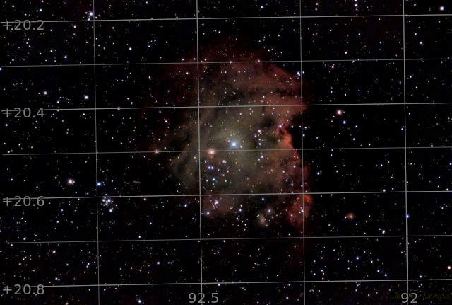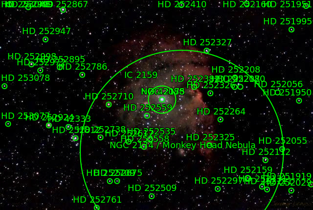 The Monkey Head Nebula lies in the nebula-dense constellation of Orion. It is believed to be formed of dust, wind, and radiation caused by newborn stars.