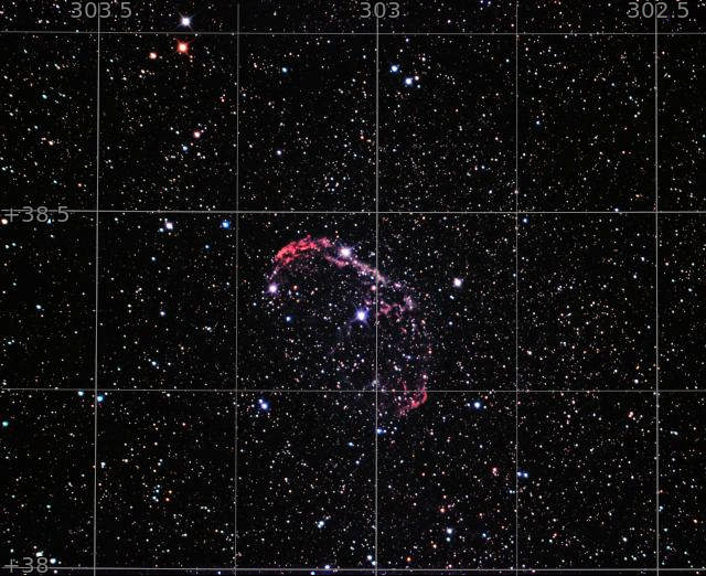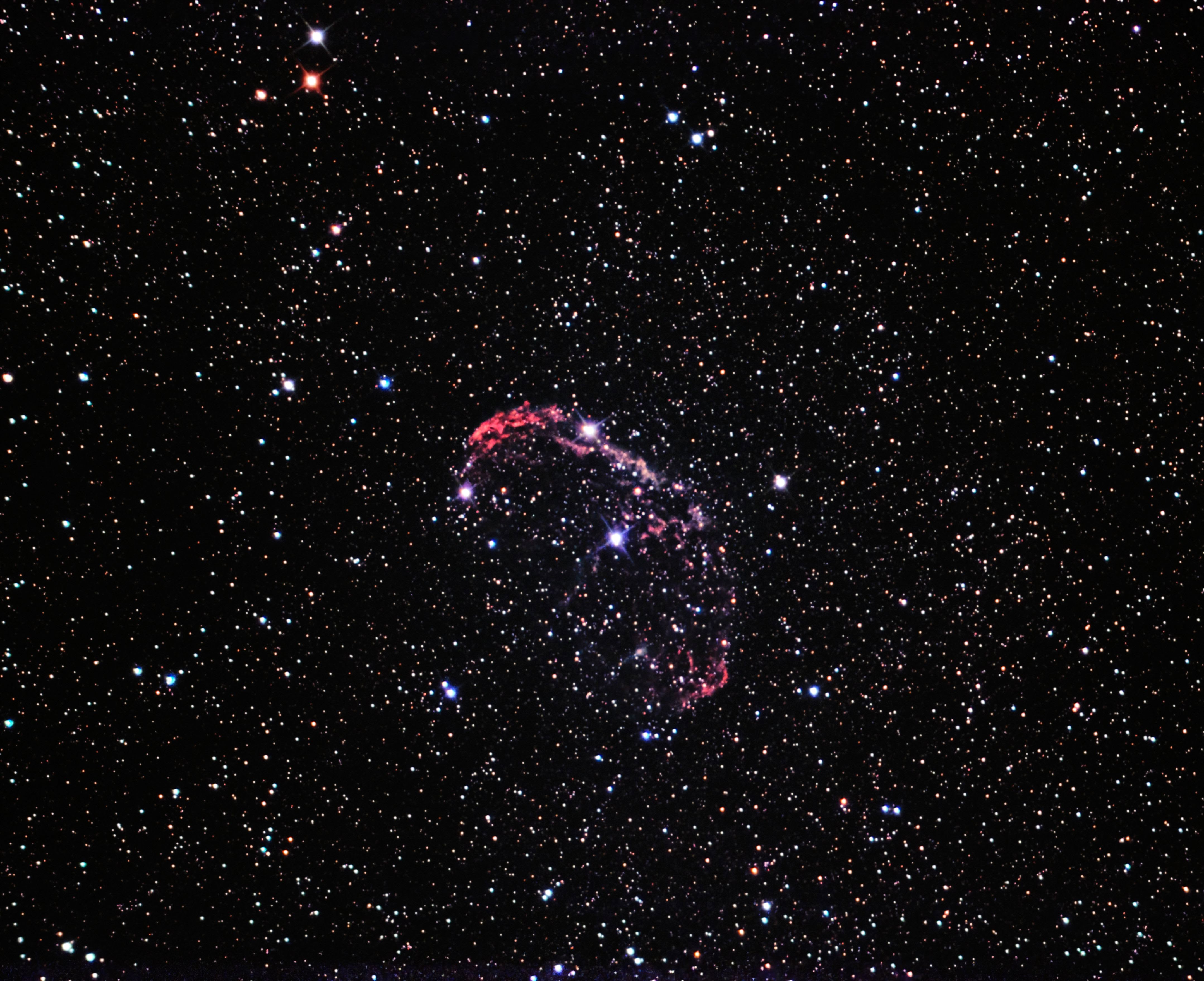 The Crescent Nebula is formed by the interaction of stellar winds around a red giant.