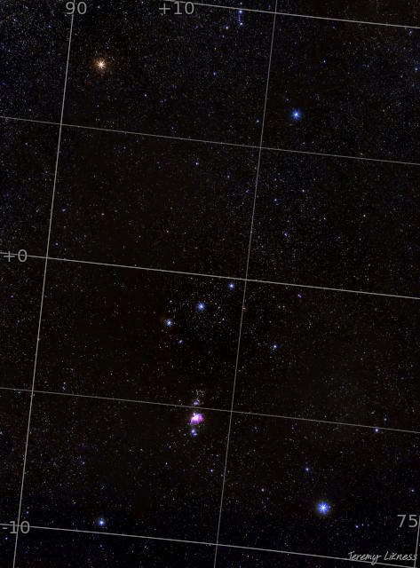 19 Ori 24 Ori 28 Ori 34 Ori 44 Ori 46 Ori 50 Ori 53 Ori 58 Ori 67 Eri Al Mankib Algebar (β Ori) Betelgeux (α Ori) Dhalim (β Eri) Flame Nebula Great Orion Nebula IC434 M42 M43 Mairan's Nebula NGC1909 NGC1976 NGC1982 NGC2024 NGC2112 Orion B Orion Nebula Part of the constellation Eridanus (Eri) Part of the constellation Orion (Ori) The star Alnilam (ε Ori) The star Alnitak (ζ Ori) The star Bellatrix (γ Ori) The star Betelgeuse The star Cursa The star Hatysa (ι Ori) The star Mintaka (δ Ori) The star Rigel The star Saif al Jabbar (η Ori) The star Saiph (κ Ori) the Witch Head Nebula