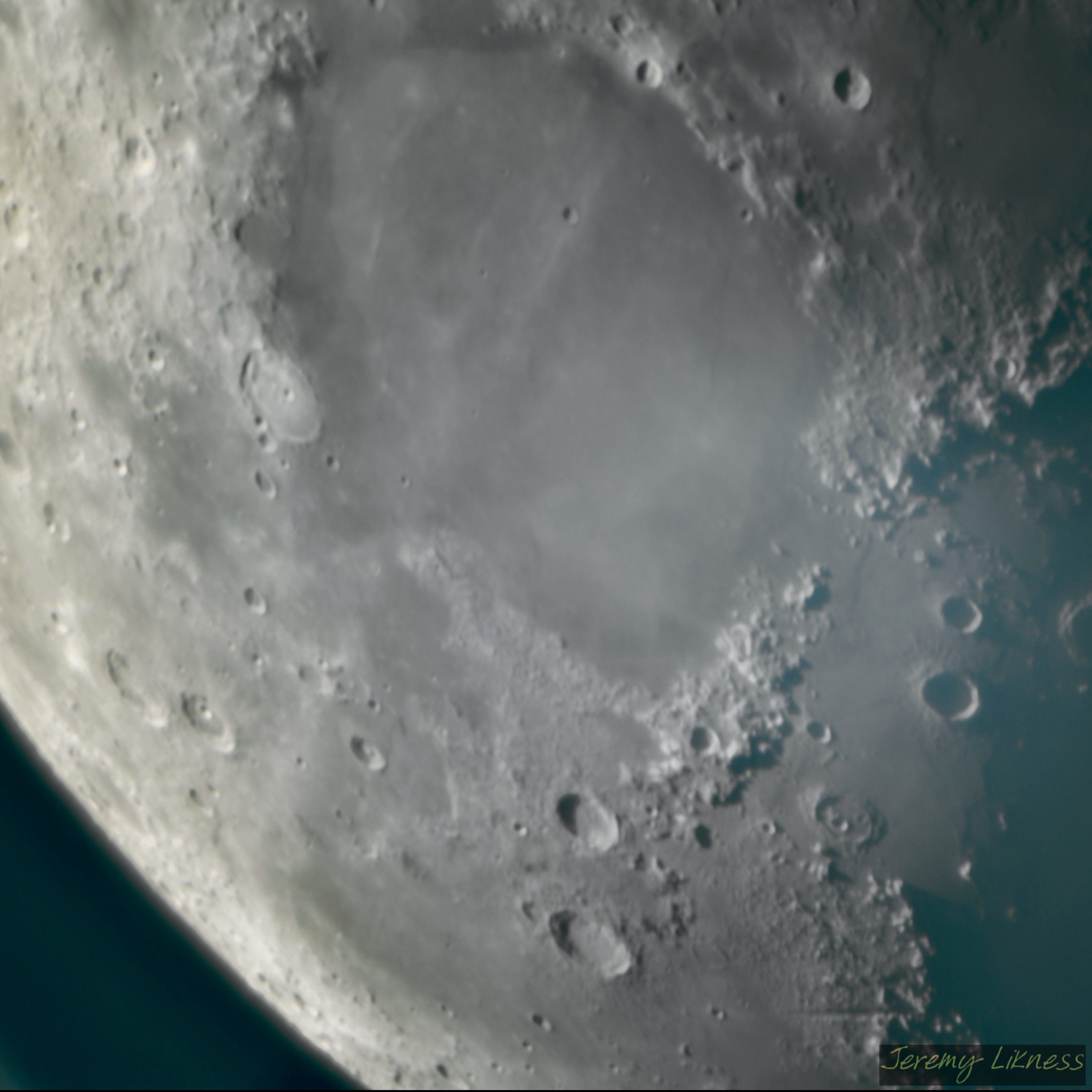 A detailed zoom shot of the edge of the moon during the day.