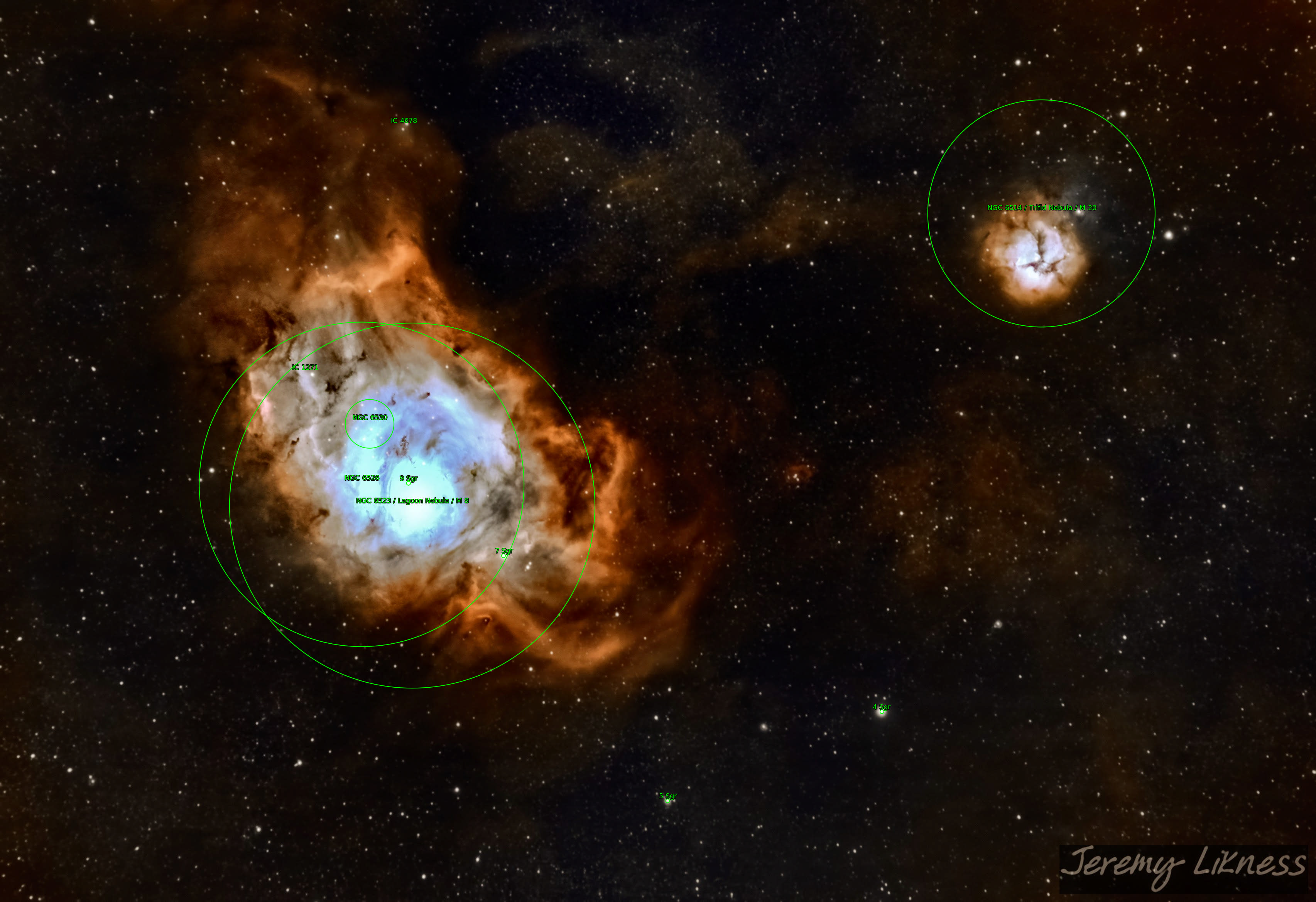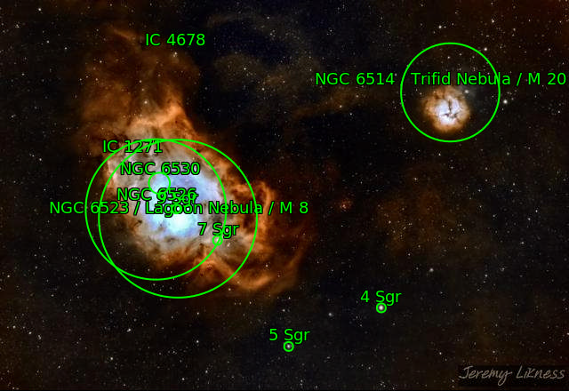 Lagoon Nebula M20 M8 NGC6514 NGC6523 NGC6526 NGC6530 The star 4 Sgr The star 5 Sgr The star 7 Sgr The star 9 Sgr Trifid Nebula