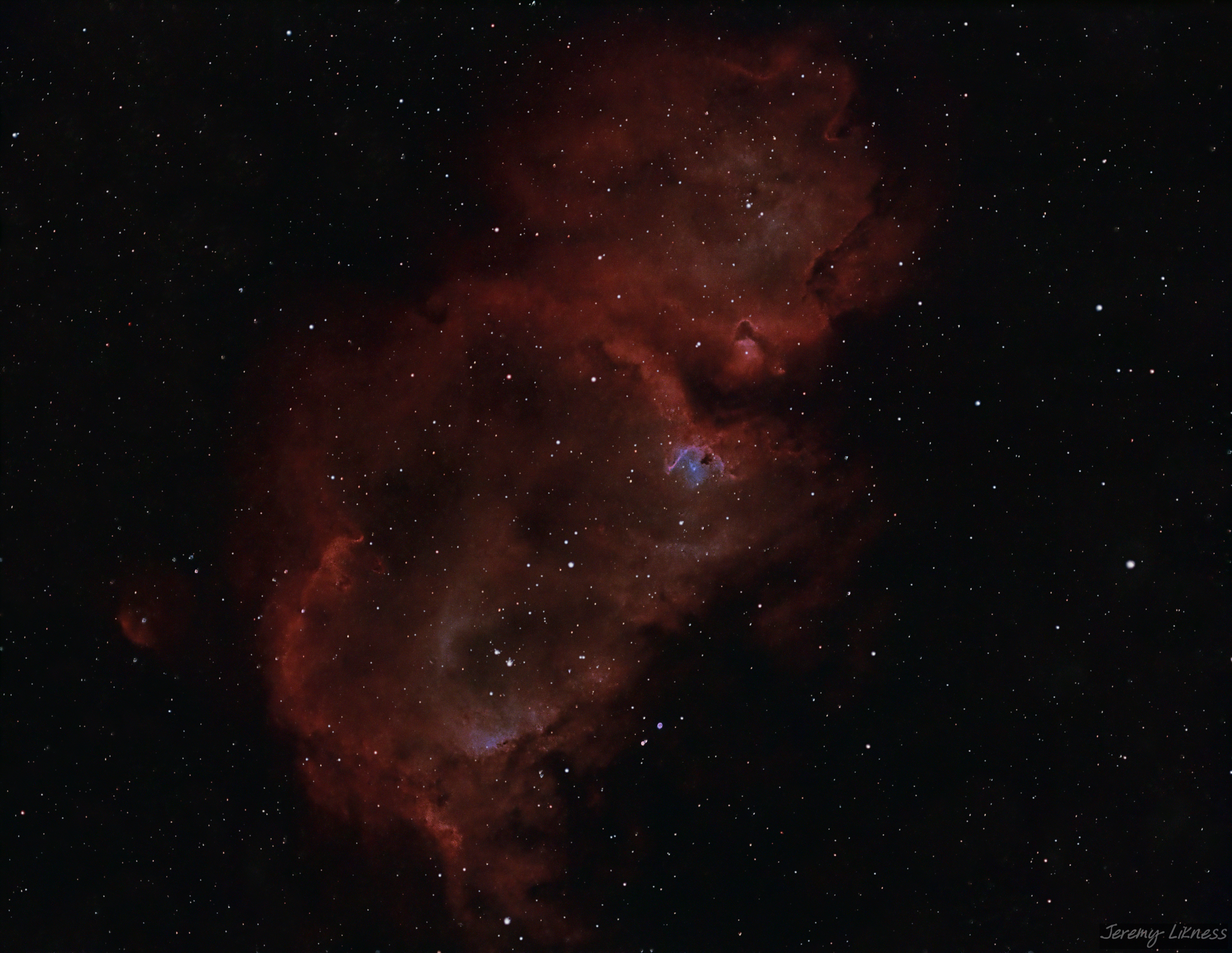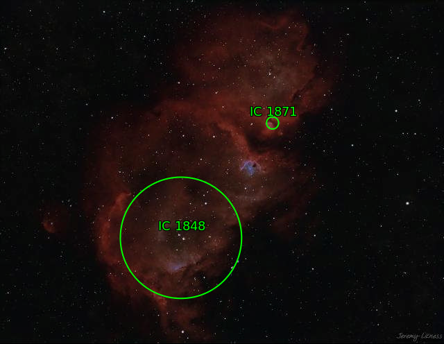 Stack four full moons next to each other and you'll have the size of this massive nebula that is a close neighbor of the Heart Nebula. What goes with heart? Soul, of course! What is the shape of the soul? Westerhout 5, the Soul Nebula.