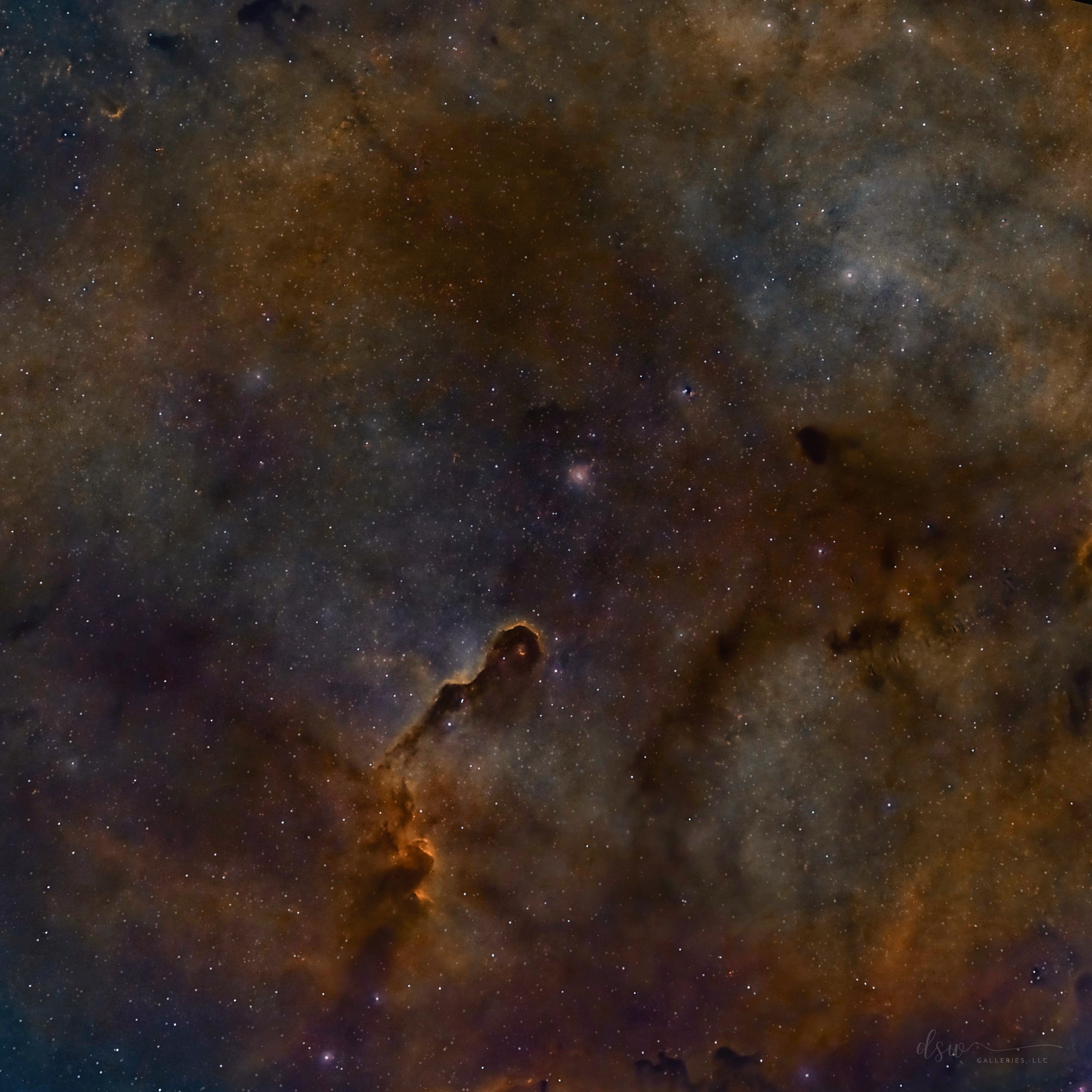 IC1396 refers to a massive region of interstellar gas and dust that is ionized by the continuous radiation blasting from the massive star designated HD 206267. It is more commonly known for the concentrated pillar that is starkly illuminated by the star and forms a distinct loop that looks like an elephant's trunk. Hence, IC1396A is also known as 'the Elephant's Trunk Nebula.'