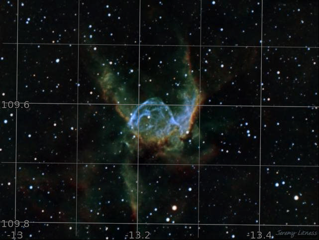 A rare tree in the North, this nebula hangs low on the horizon and is elusive to image but beautiful to behold.