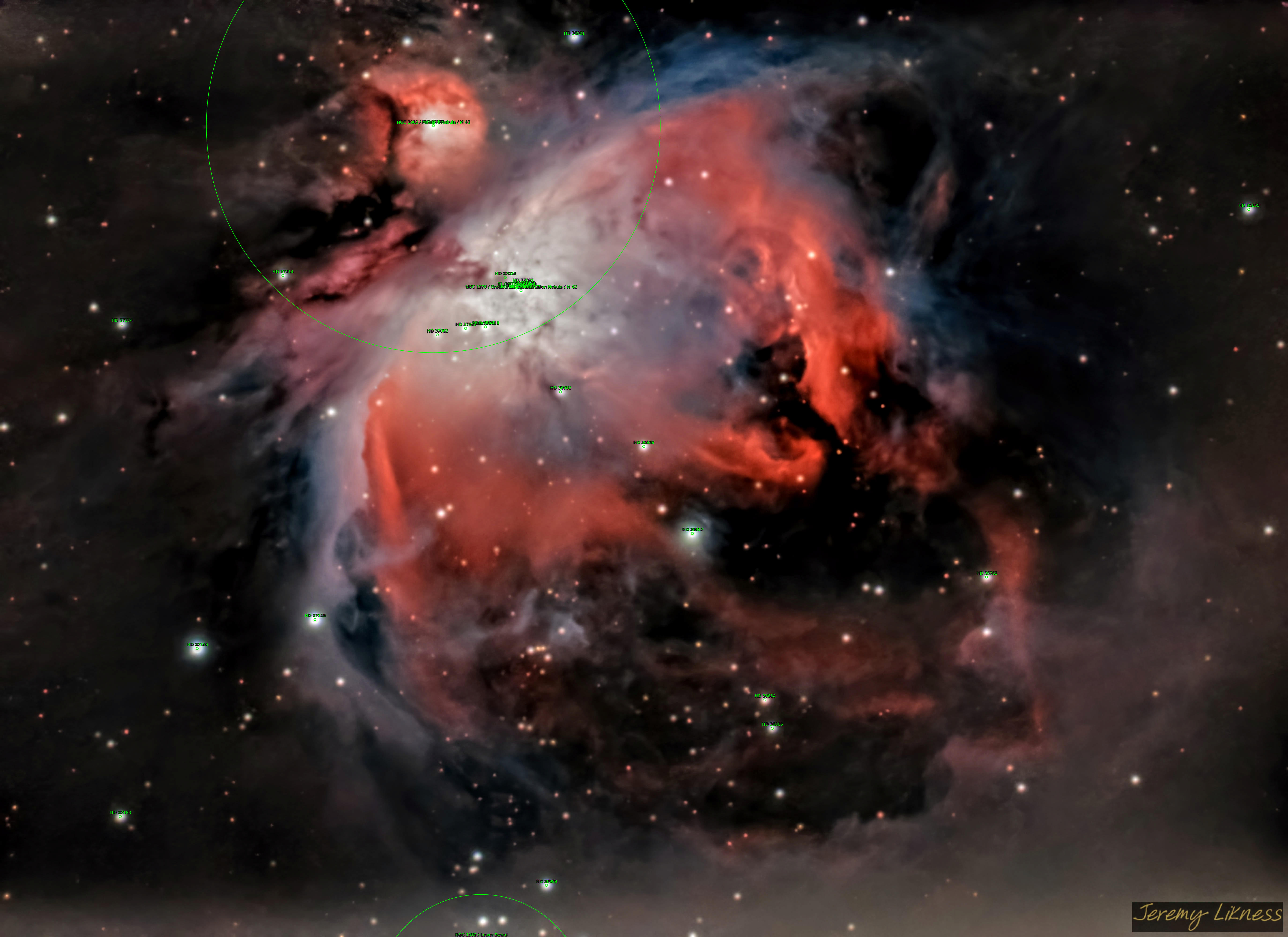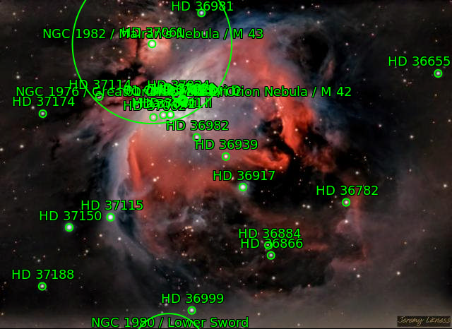 Great Orion Nebula M42 M43 Mairan's Nebula NGC1976 NGC1982 Orion Nebula The star θ1Ori The star θ2Ori