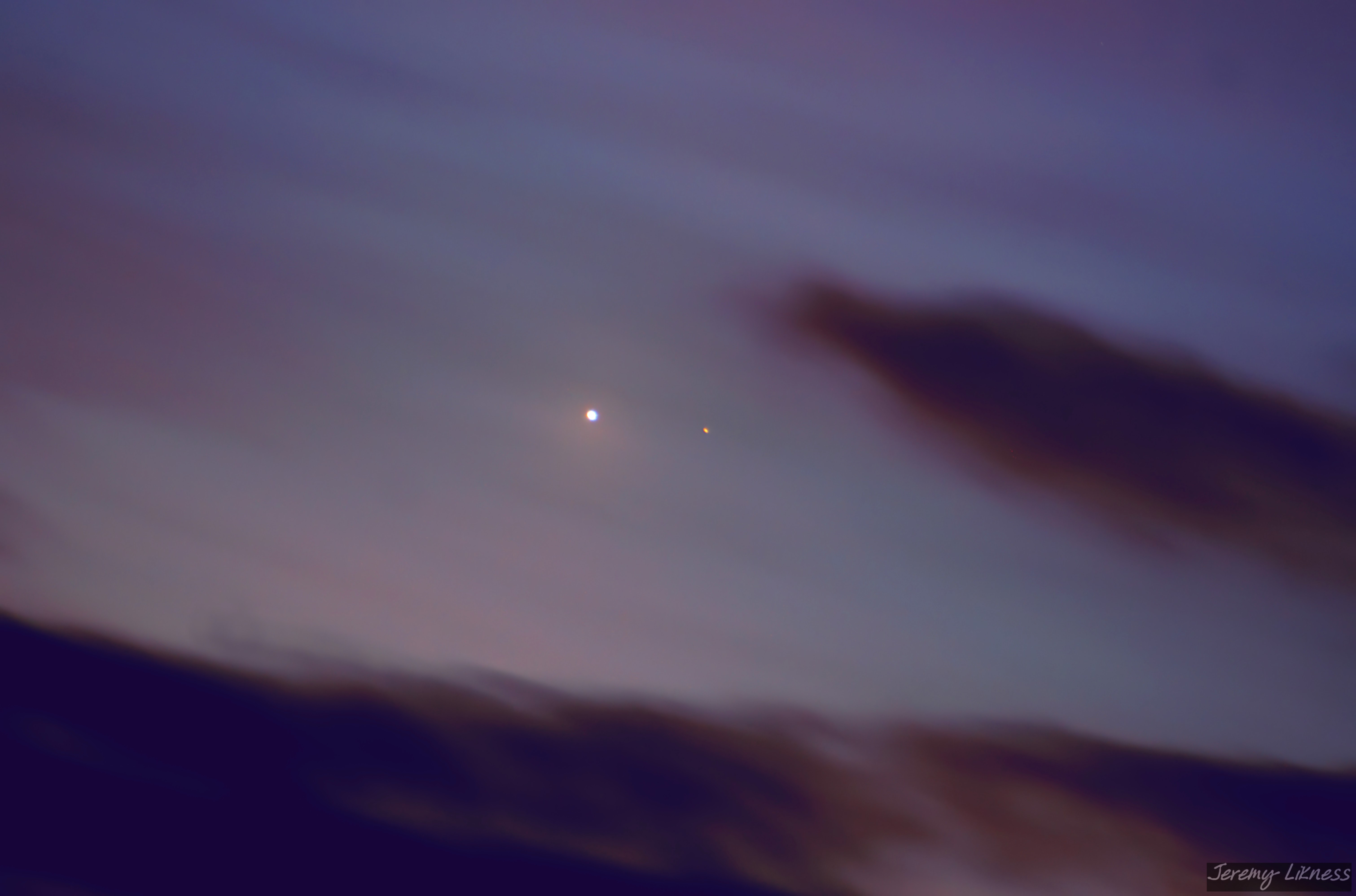 Venus shares company with Saturn in the clouds just after sunset.