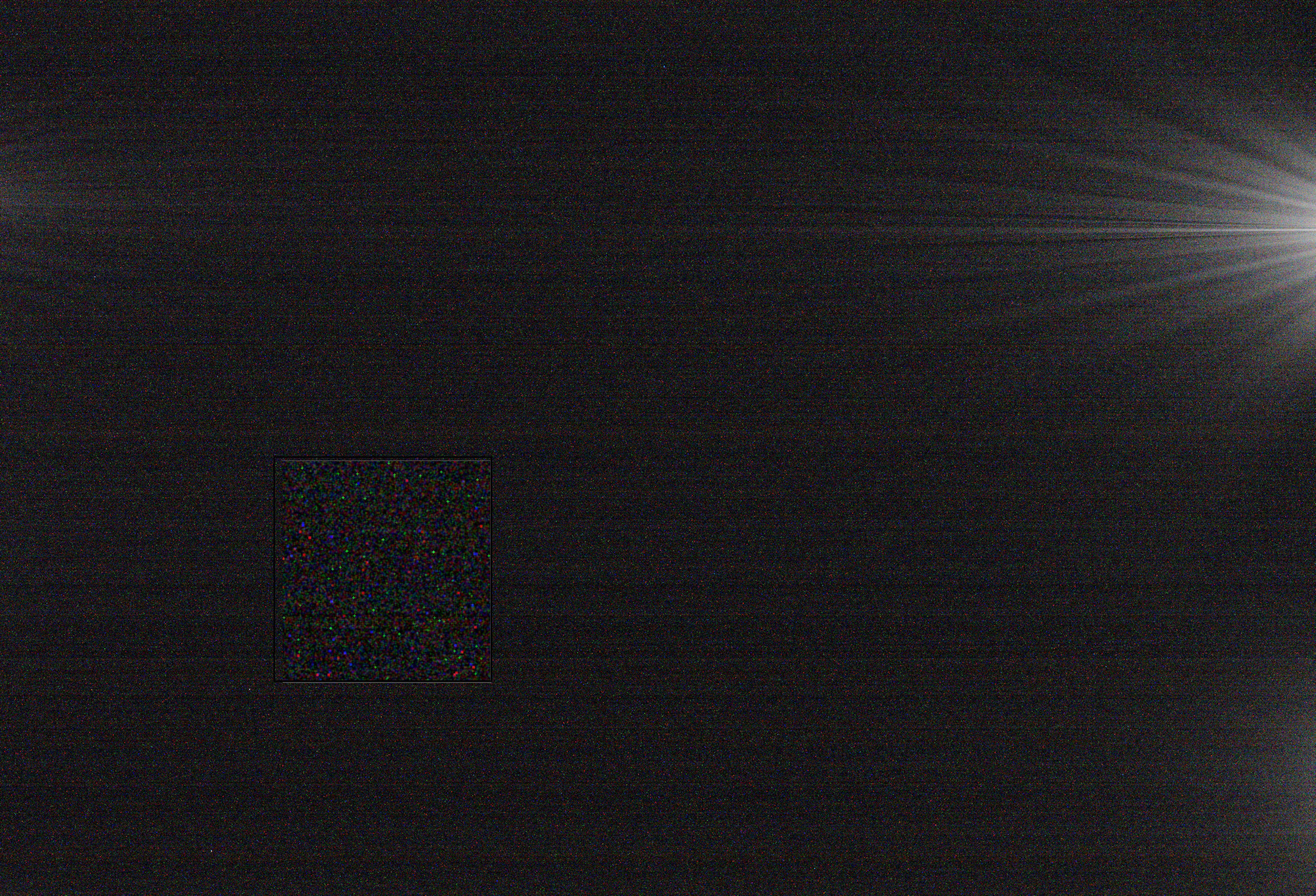 Dark frames are taken with no light on the sensor using the same exposure time, temperature, and ISO or gain that you used for your main images. The same way a long exposure collects more light to capture the faint details of nebulae, it also picks up noise from current in your sensor. In addition, some pixels are defective and can appear darker (“cold pixels”) or brighter (“hot pixels”) than neighboring pixels. Darks isolate these pixels so they can be brightened or darkened during processing to match the rest of the image. Finally, some cameras leak light and produce what is called “amp glow.” In the following dark, can you spot the three areas of amp glow and see just how many “hot” red, green, and blue pixels there are in the magnified inset?