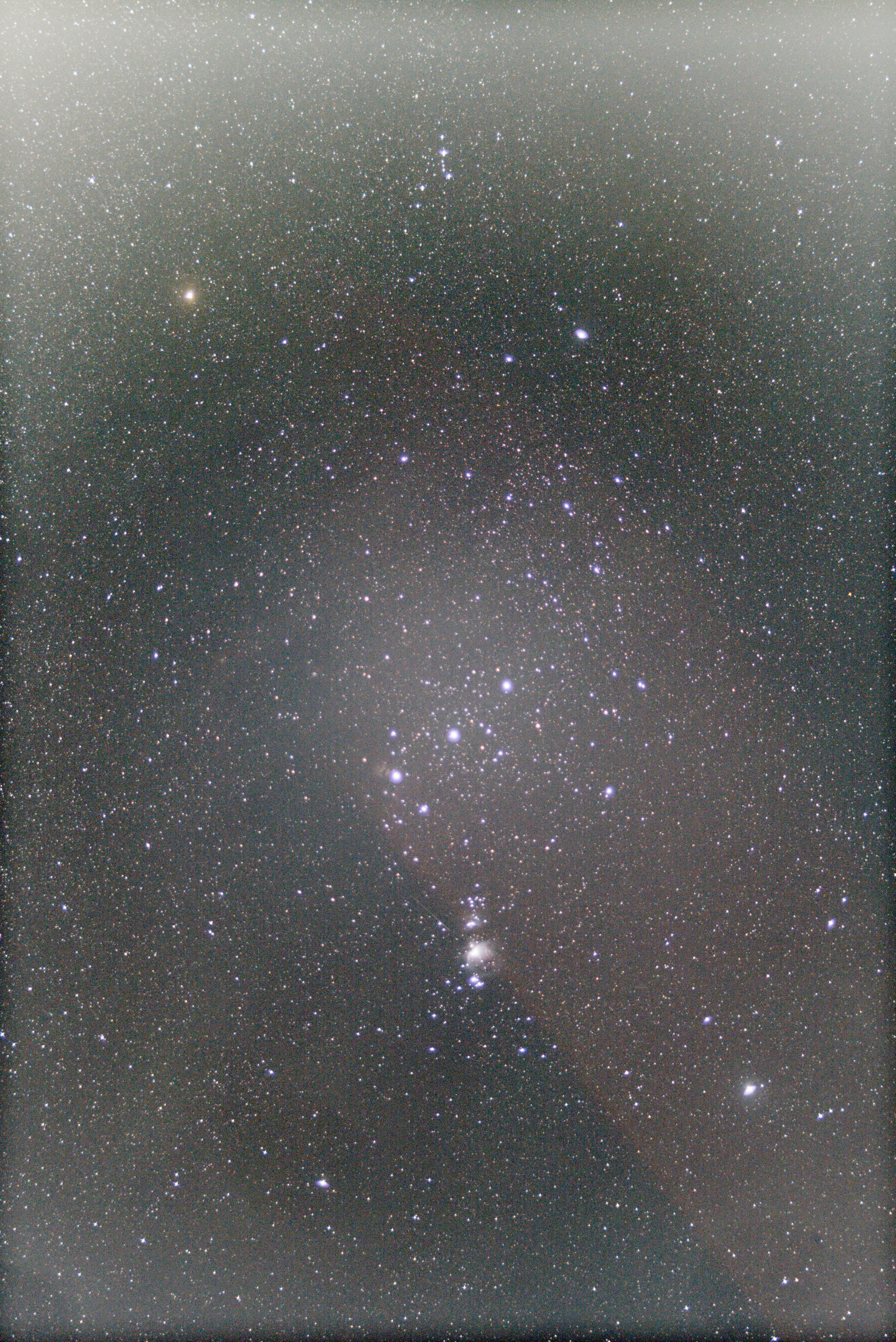 Let’s get right to it. Here’s how I take calibration frames. Trust me, it’s helpful to know when we go into the why. Last night, I took 30 1-minute pictures of the Orion constellation. This is what a single frame looks like: