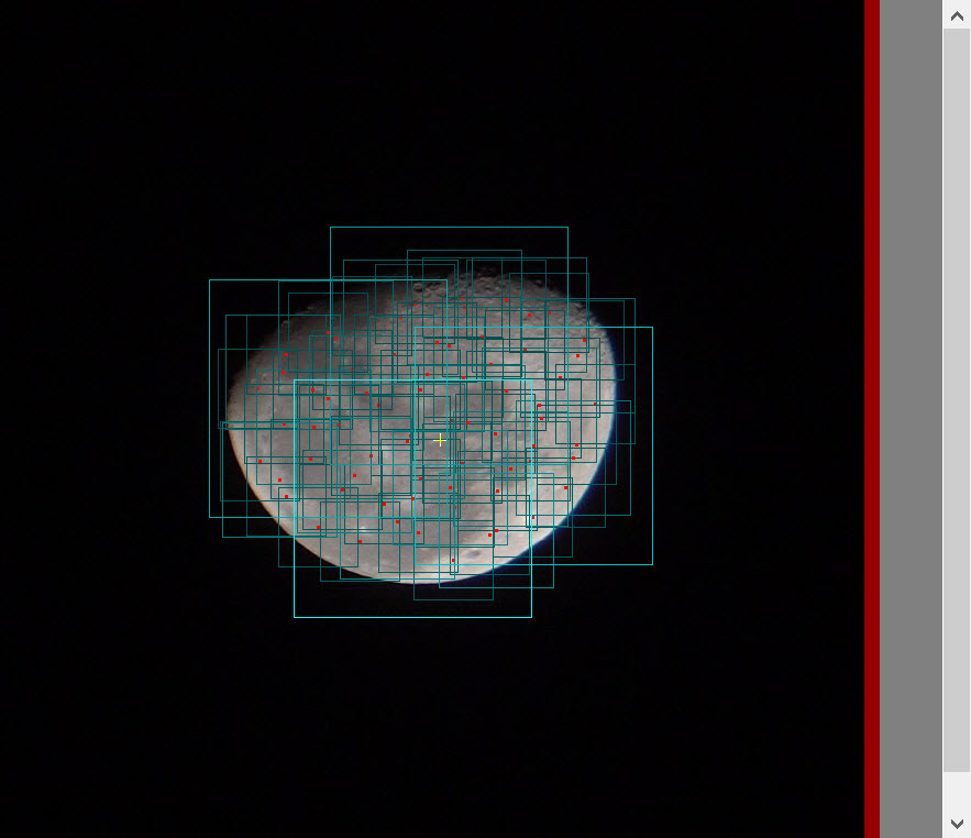 AutoStakkert! can handle terrain just fine, but there’s another free application that many users swear by so I’m sharing it here. It’s been aroud a minute or two (check out the RegiStax6 website). The interface is very similar to AutoStakkert! I’ll go ahead and drag the moon onto the app. Here, the steps aren’t as intuitive, but next I’ll tap “Set Alignpoints”. The result missed a few craters, so I add them by clicking on points in the photograph.