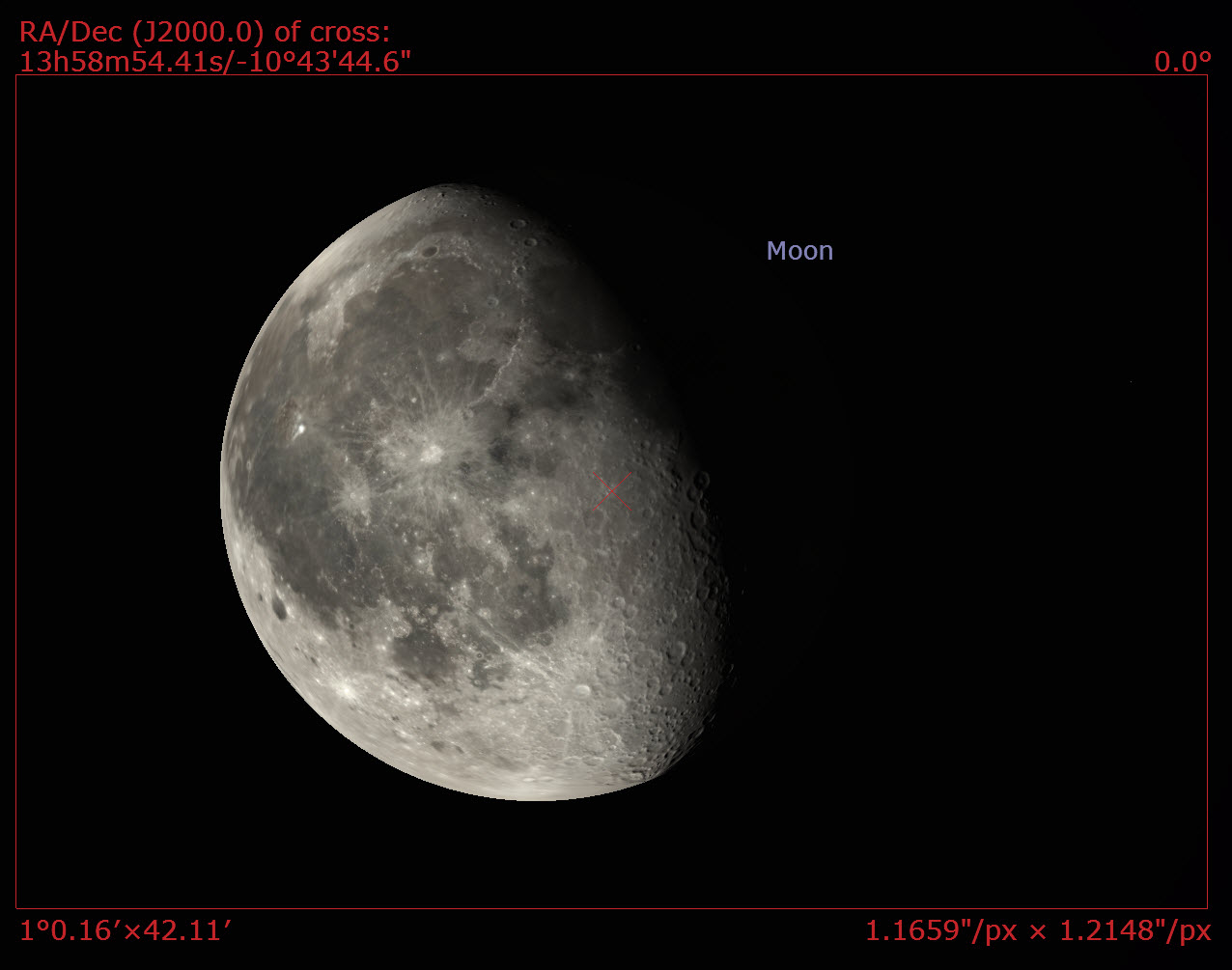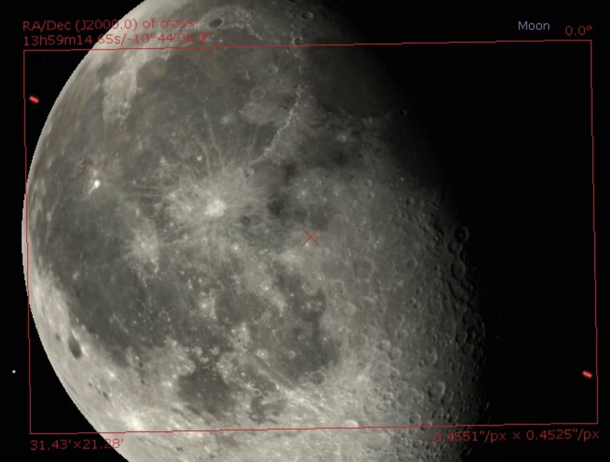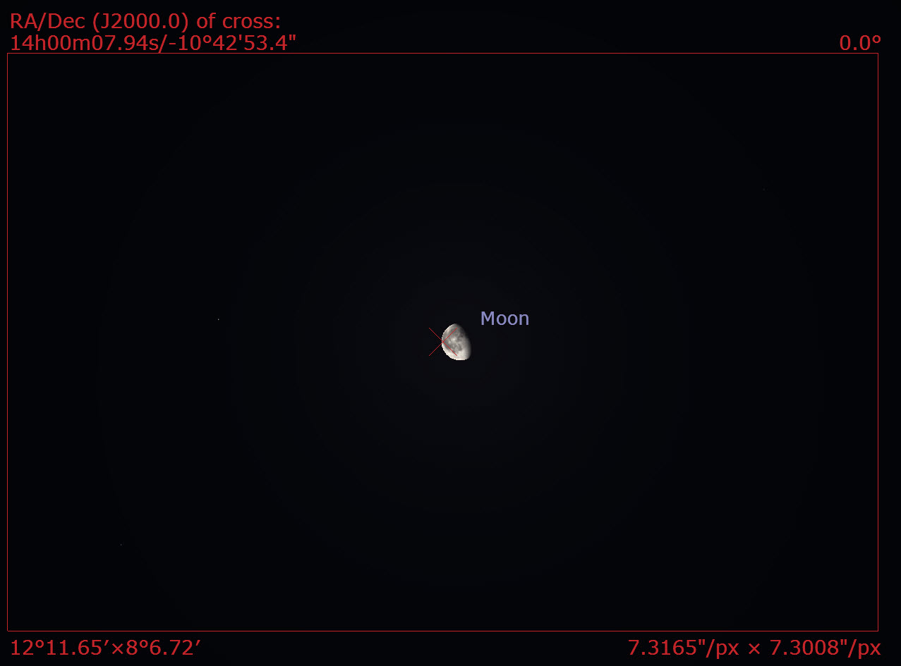 This configuration then lets me check “framing” or how the image will appear. This is the moon tomorrow morning as framed by different pieces of equipment I have.
