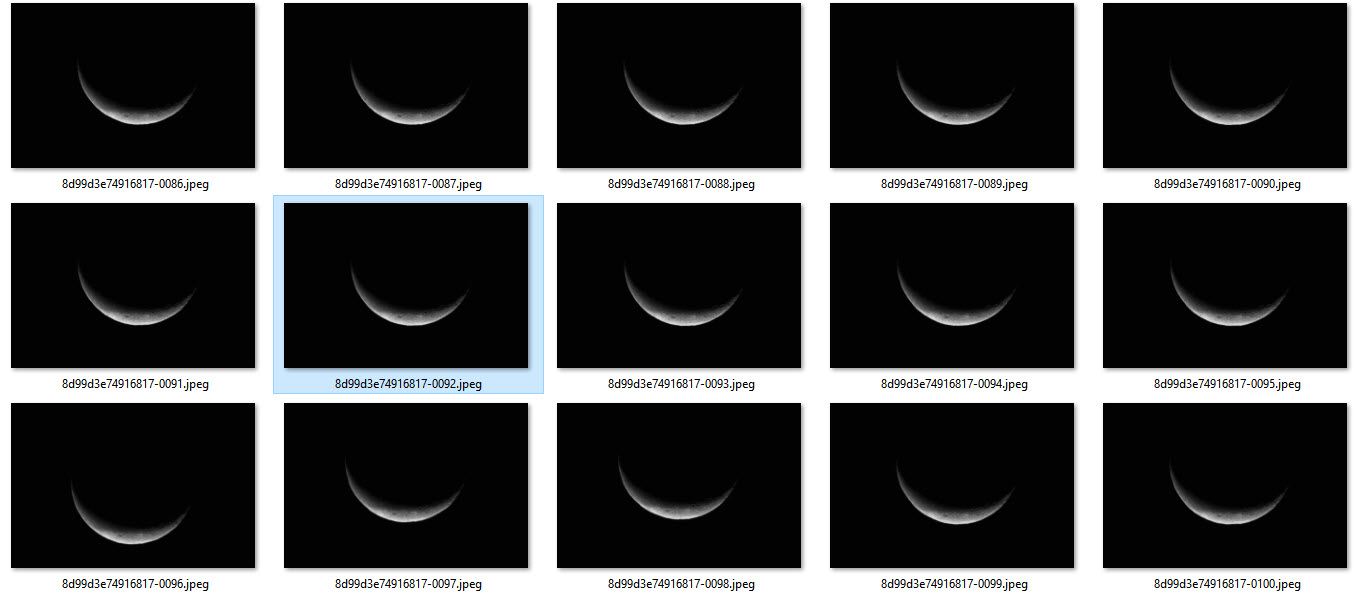 Here is a screenshot of several Stellina images. Notice how the moon is in different positions within the frame. Pre-processing will address that.