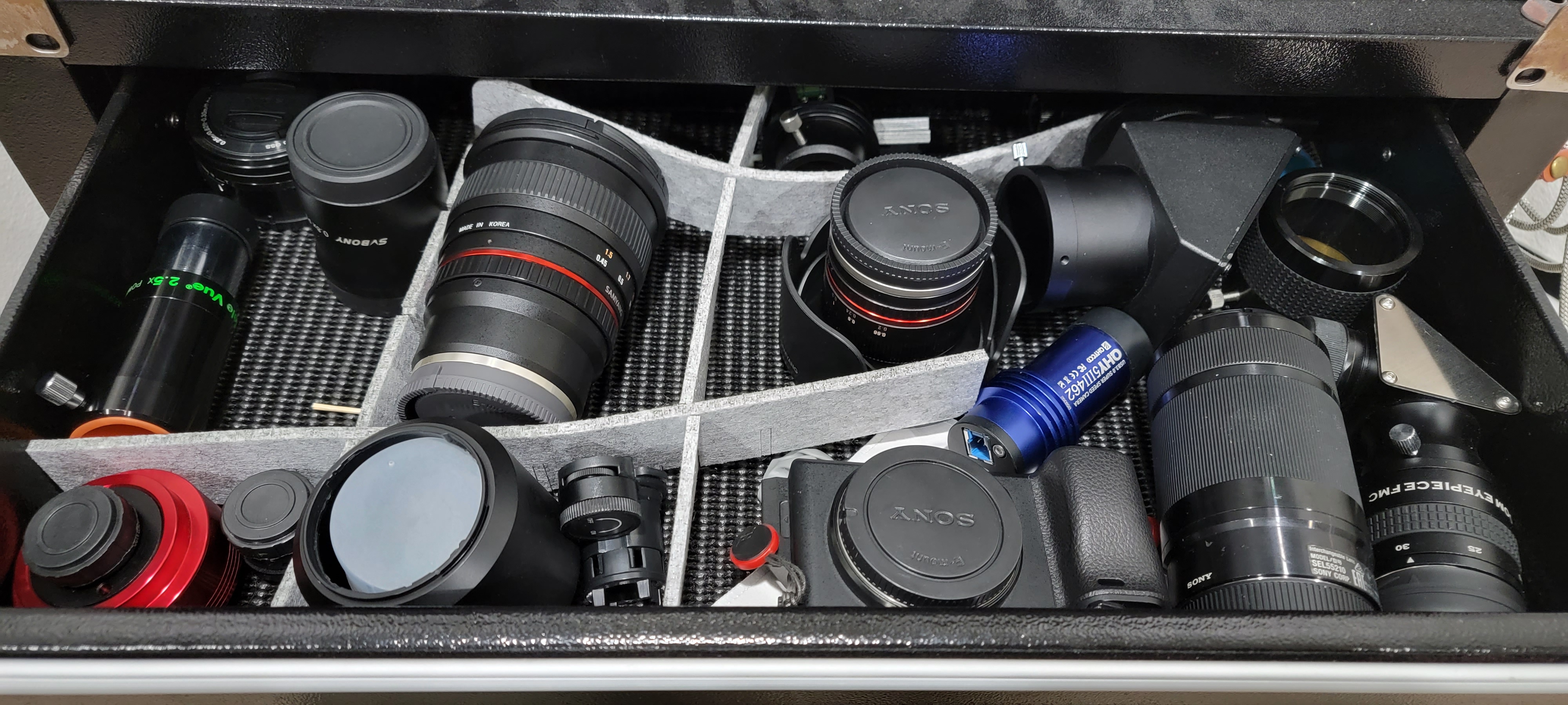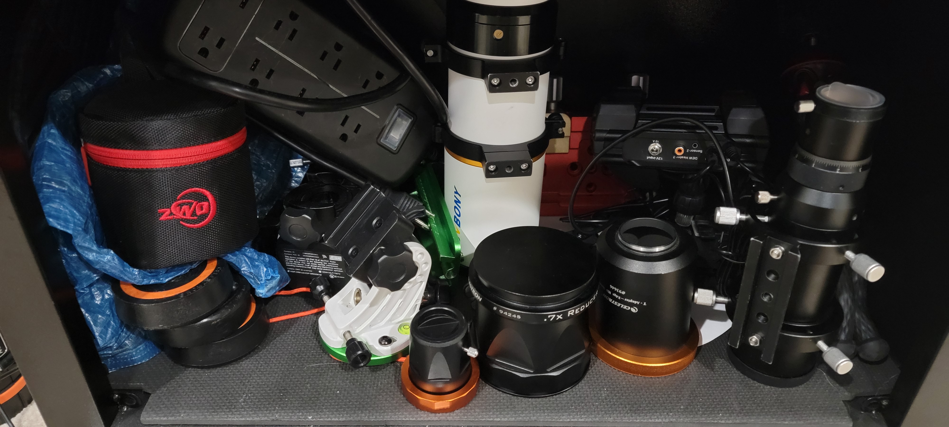 Wow. That’s a lot of gear! Much of it has been acquired over several years. I use almost everything because most purchases happened as the result of me realizing I needed something after a failed attempt at imaging. I hope this tour was helpful to see what’s involved beyond the obvious tube and mount. I also wanted to share my solutions for storing equipment and accessories in case you needed inspiration.