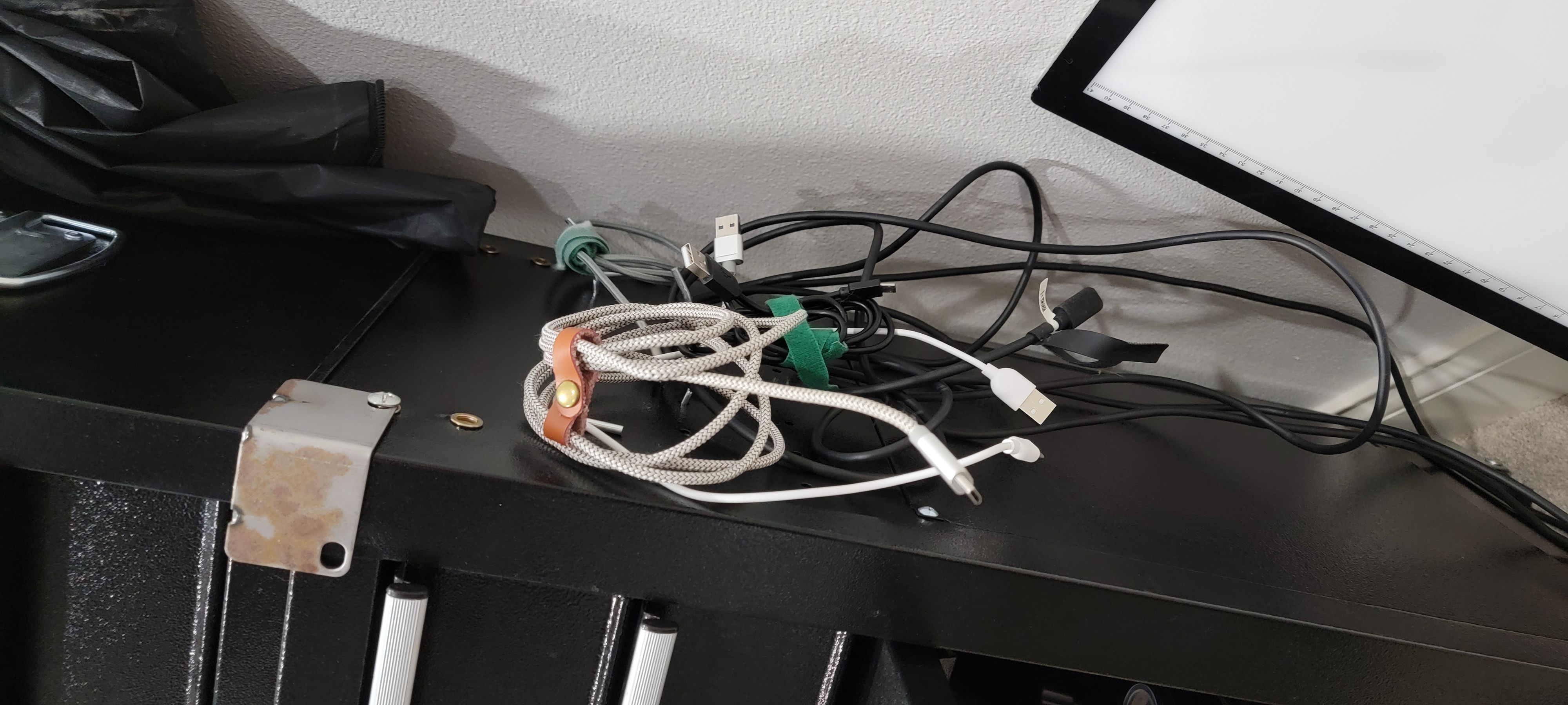 Color-coding the cables has been extremely helpful. I picked up a set of colored Velcro bands to identify the different types of cables. I can now easily find the cable that I need at a glance, while winding and storing is easy with the Velcro to close the loop. In the field, the Velcro helps with cable management.